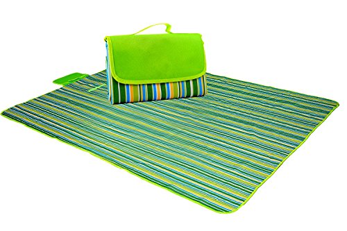 STRAUS:Thick Waterproof Picnic Blanket Tote Compact Outdoor Camping Rug Beach Mat,Outdoor Camping+70''x59''picnic mat (The green stripe)