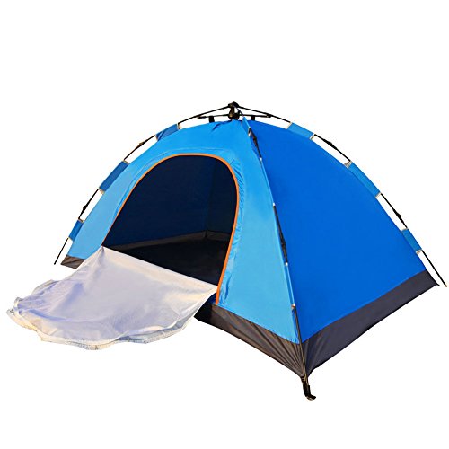 All images of ZJKC® 2 to 4 Man Automatic Popup Camping Tent, One Room, 8.5mm Fiberglass Poles, 210D Nylon Oxford with Excellent Waterproof, Blue Backpacking Tent (3-4 person tent)
