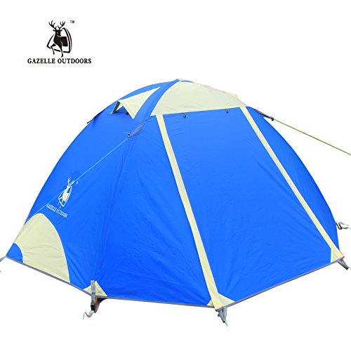 Gazelle Outdoors Professional Ultralight Waterproof Aluminum Pole Camping Hiking Backpacking Tent - 2 Person 3 Season (Blue)