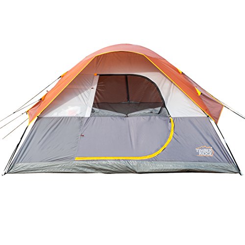 Timber Ridge D-Shape Door, 6-Person, 3-Season Waterproof Family Camping/Travelling Dome Tent with Carry Bag